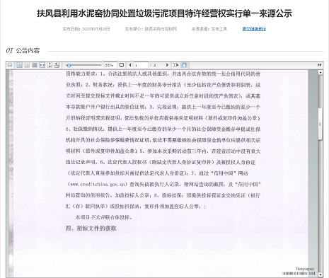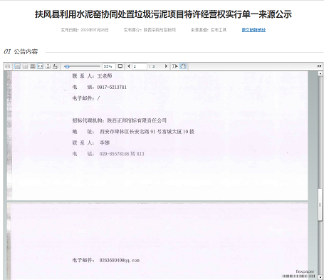 扶風縣利用水泥窯協同處置垃圾污泥項目特許經營權實行單一來源公示