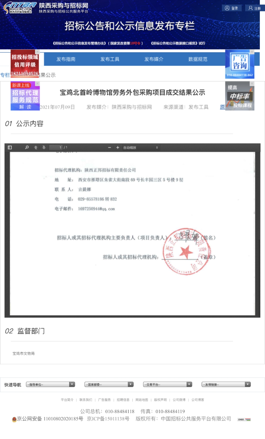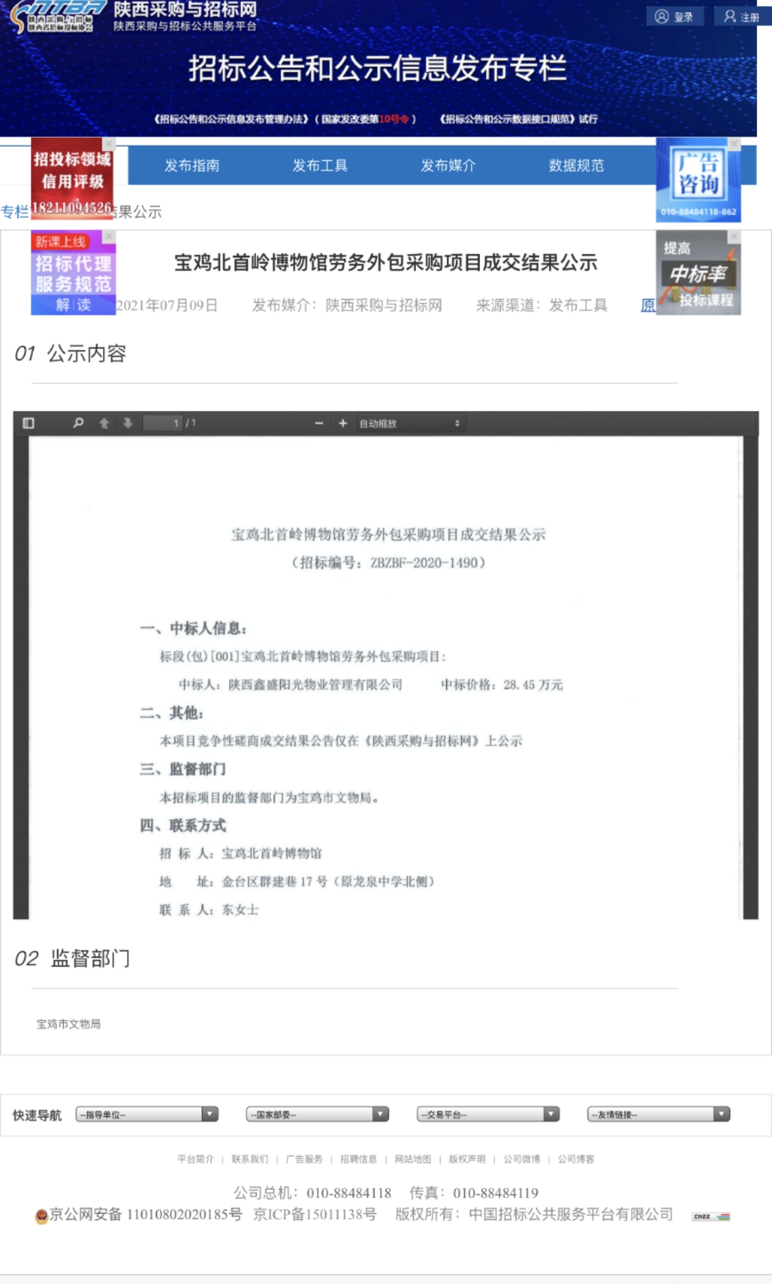 寶雞北首嶺博物館勞務(wù)外包采購(gòu)項(xiàng)目成交結(jié)果公示