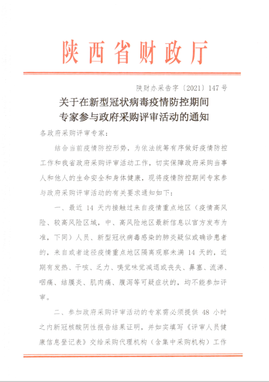 關于在新型冠狀病毒疫情防控期間專家參與政府采購評審活動的通知