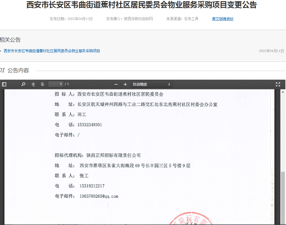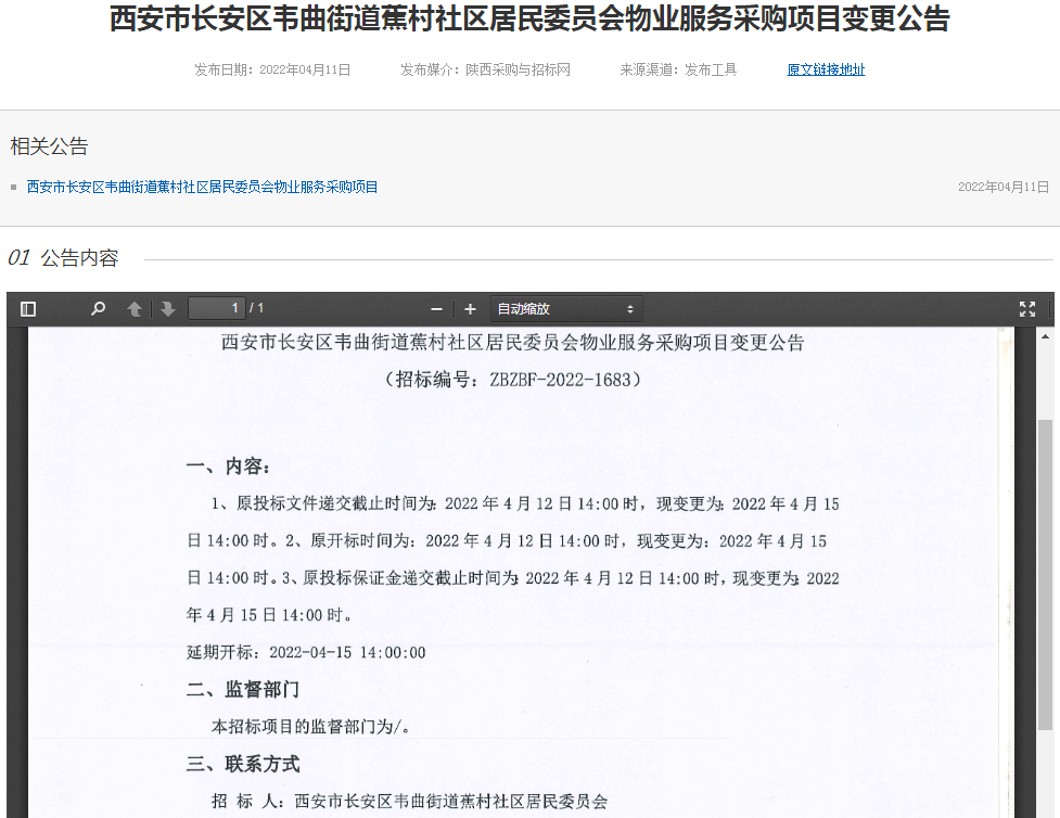 西安市長安區(qū)韋曲街道蕉村社區(qū)居民委員會物業(yè)服務(wù)采購項目變更公告