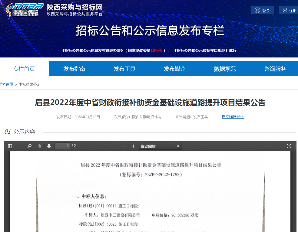 眉縣2022年度中省財政銜接補助資金基礎設施道路提升項目結果公告