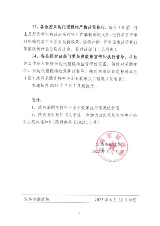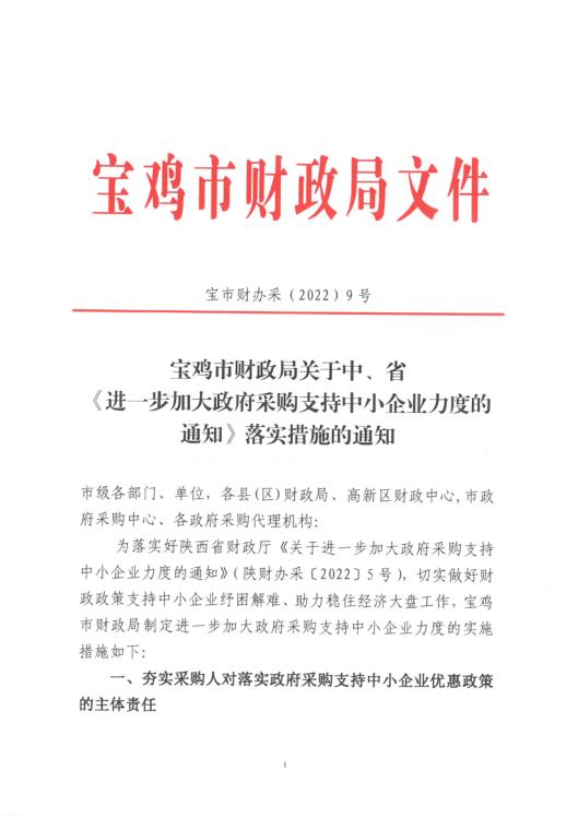 寶雞市財政局關于中、省《進一步加大政府采購支持中小企業力度的通知》落實措施的通知