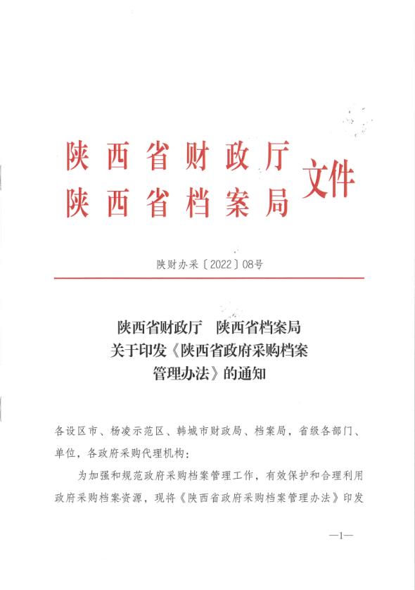 陜西省財(cái)政廳陜西省檔案局關(guān)于印發(fā)《陜西省政府采購(gòu)檔案管理辦法》的通知