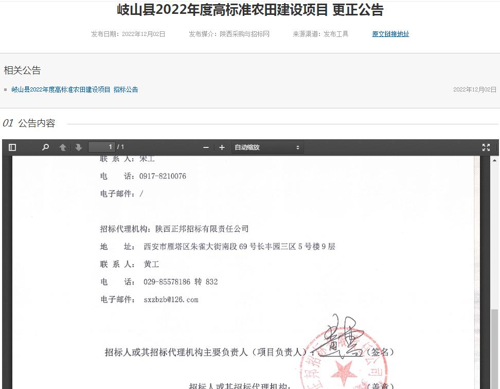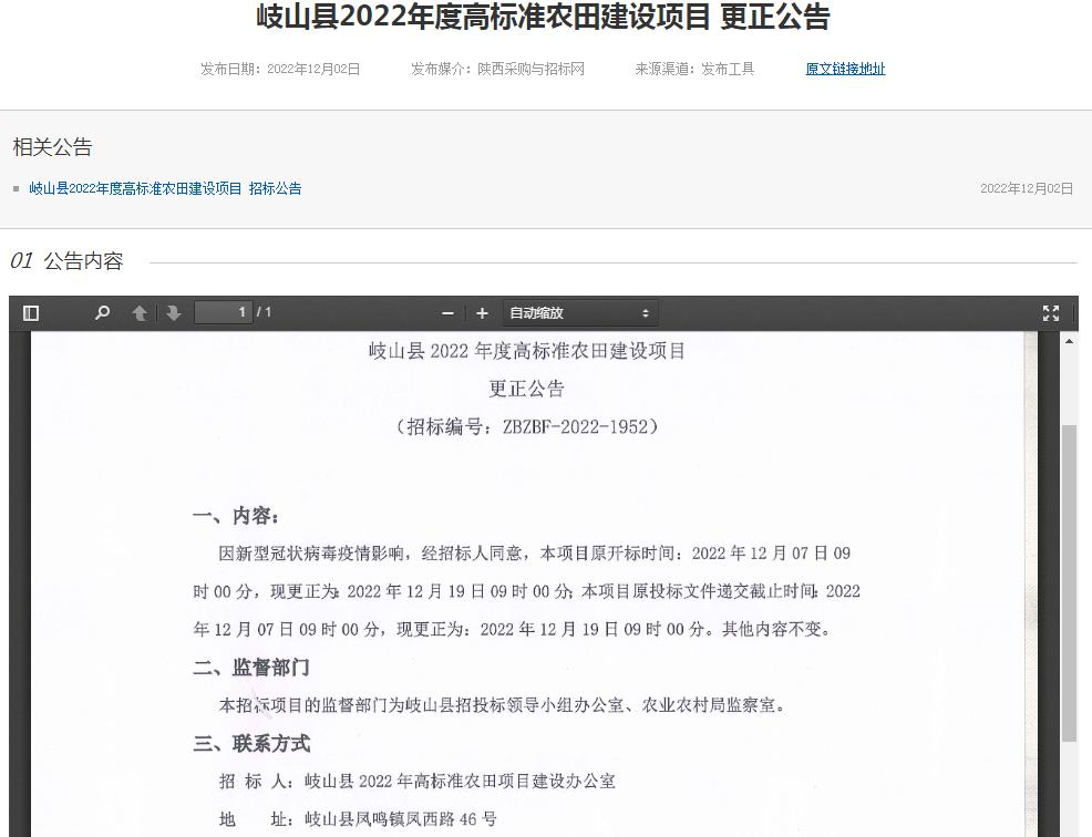 岐山縣2022年度高標準農田建設項目 更正公告