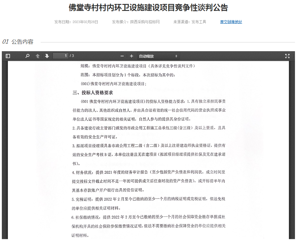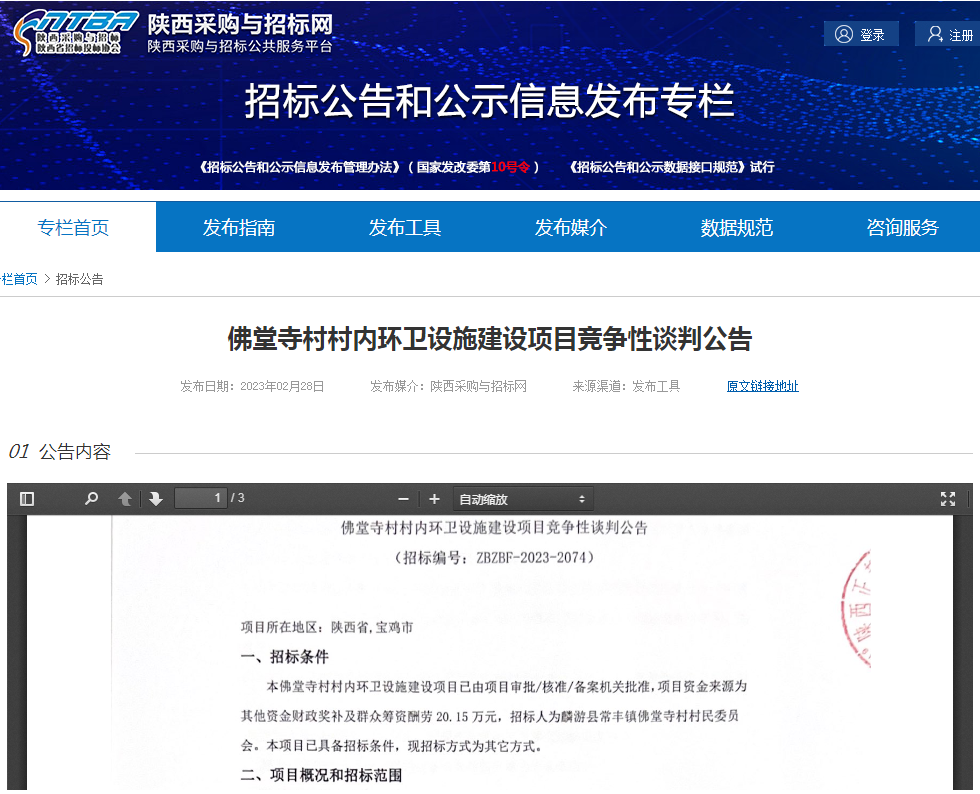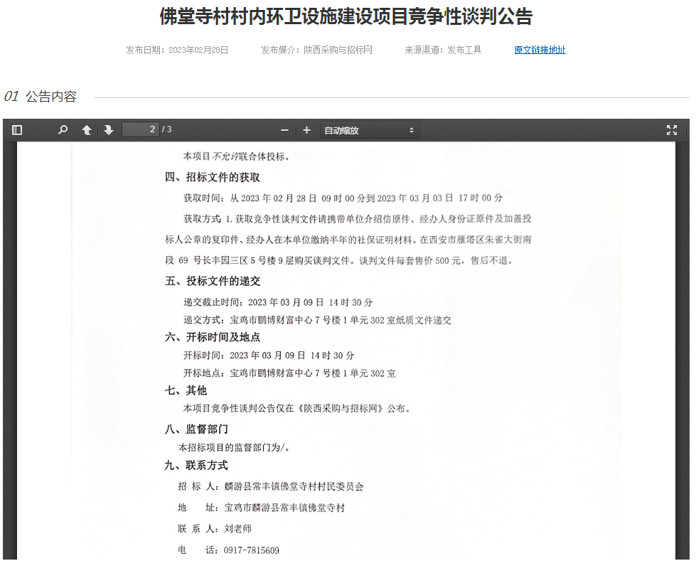佛堂寺村村內環衛設施建設項目競爭性談判公告