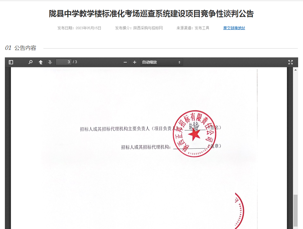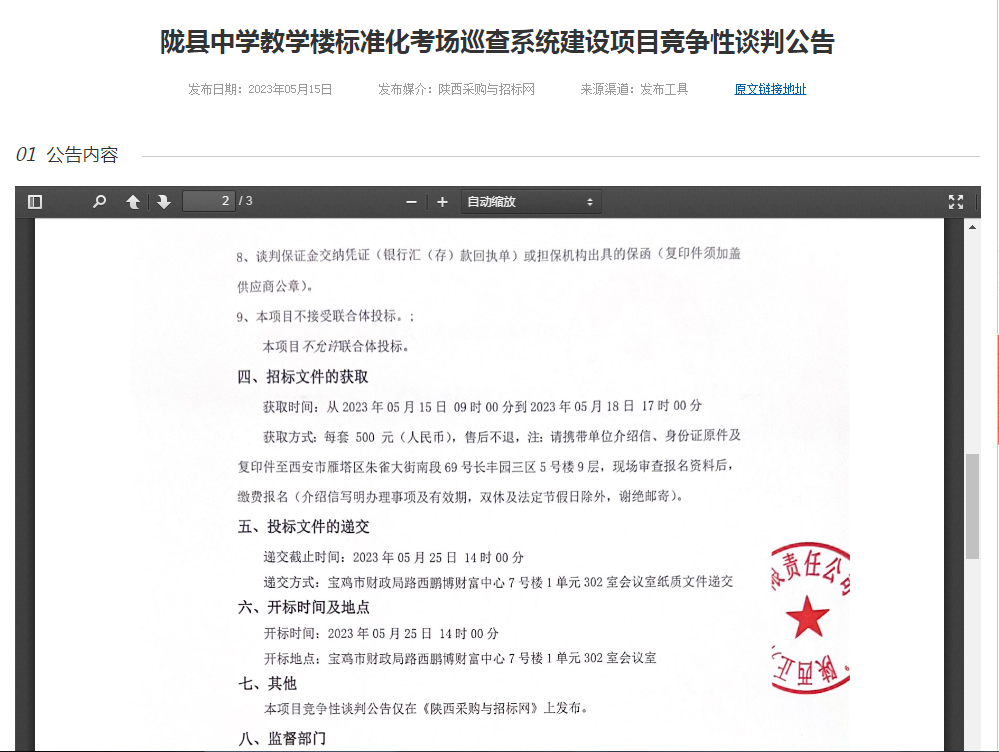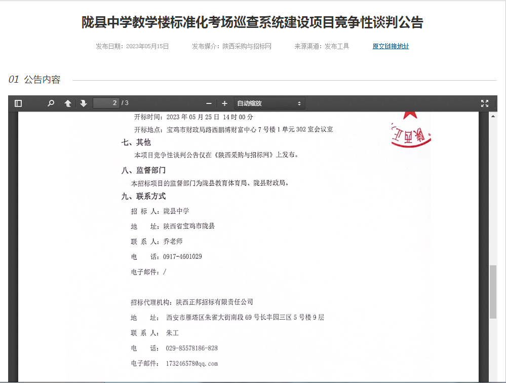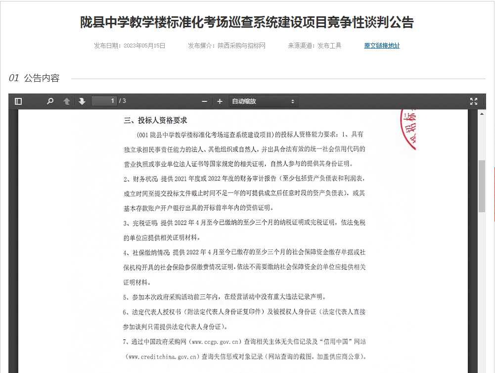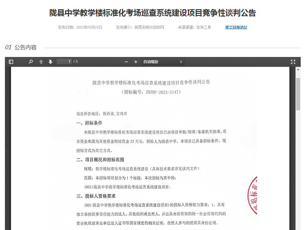 隴縣中學(xué)教學(xué)樓標(biāo)準(zhǔn)化考場(chǎng)巡查系統(tǒng)建設(shè)項(xiàng)目競(jìng)爭(zhēng)性談判公告