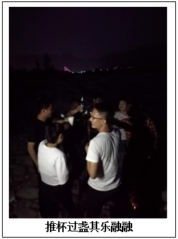 夜色越來越濃,但是大家的興致卻依舊濃厚。然而,考慮到安全問題,只能將此次河邊燒烤告一段落。在公司領導的號召下,大家將垃圾收拾帶走,為當地人民群眾留下了環保的好印象。然后驅車返回。